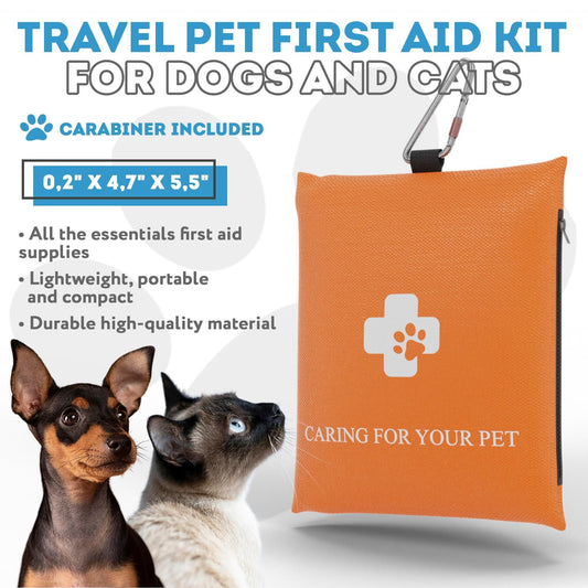 Animal First Aid Kit Portable Pet Emergency Kit of 17 Pcs Lightweight Dog Travel Pet First Aid Kit for Dogs and Cats with Zipper Carabiner