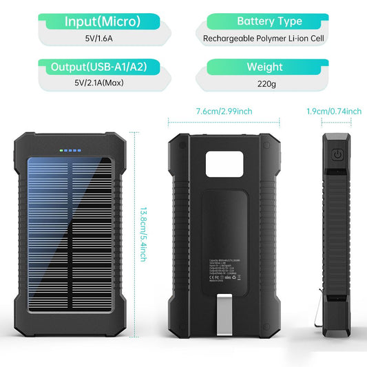 Solar-Powered Portable Charger With Built-In Light, Featuring An 8000mAh High-Capacity Battery Pack, Capable Of Solar Charging And Illumination, Compatible With IPhone
