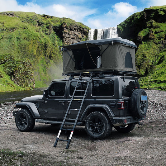 Trustmade Triangle Aluminium Black Hard Shell Grey Rooftop Tent with Roof Rack Scout Plus Series