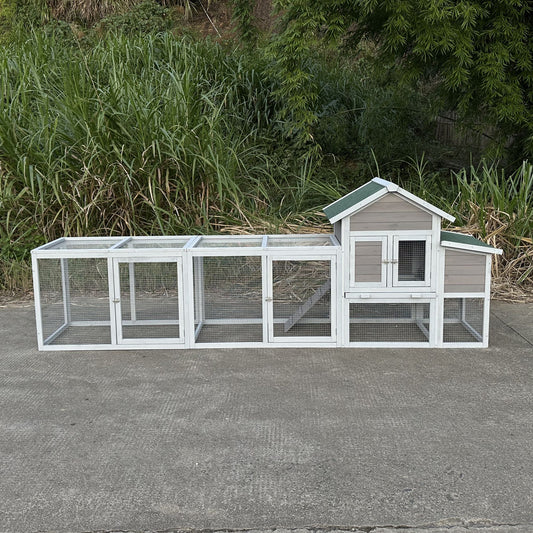 122" Large Gray Wood Chicken Coop Hen House Pet Rabbit Hutch Wooden Pet Cage Backyard with Nesting Box