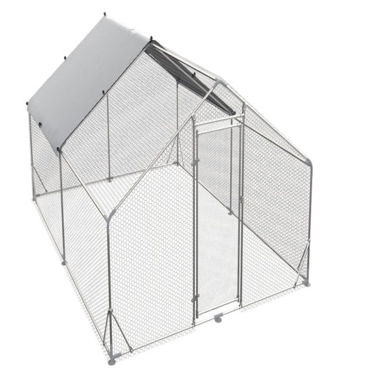 Large Metal Chicken Coop with Run, 19.7x9.8x6.6ft, Walkin Poultry Cage for Yard with Waterproof Cover, Dome Roof Large Poultry Cage for Hen House, Duck and Rabbit, Silver